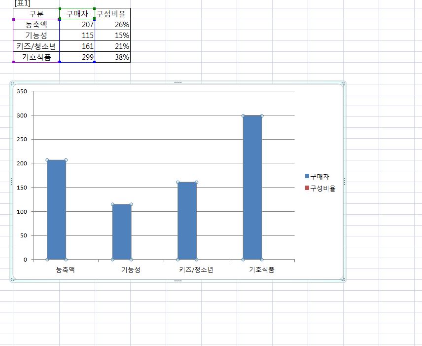 주어진 차트에서 구성비율의 값이 너무 작아서 '구성비율'을 선택한 후 차트를 바꿀수가 없네요...