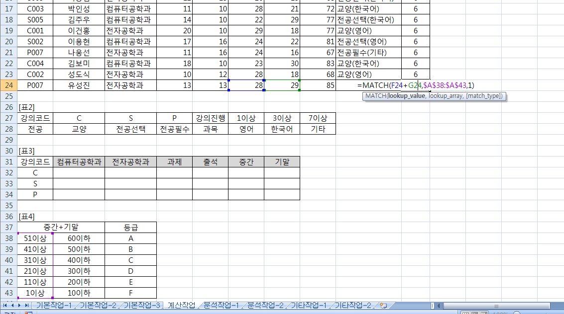 : 범위에서 옵션을 적용하여 찾을 값과 같은 데이터를 찾아 그 위치에 대한 일련번호를 반환하는 함수입니다.