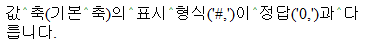 ⑦의 경우 0일 때도, 0으로 표시되어야 하므로 0, 으로 설정해 주셔야 합니다.