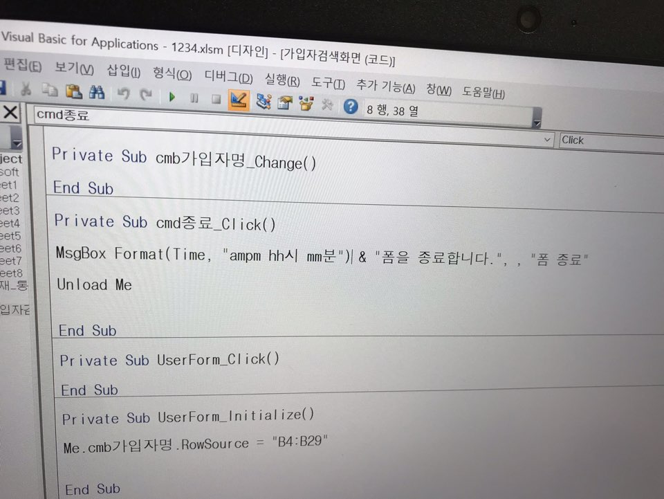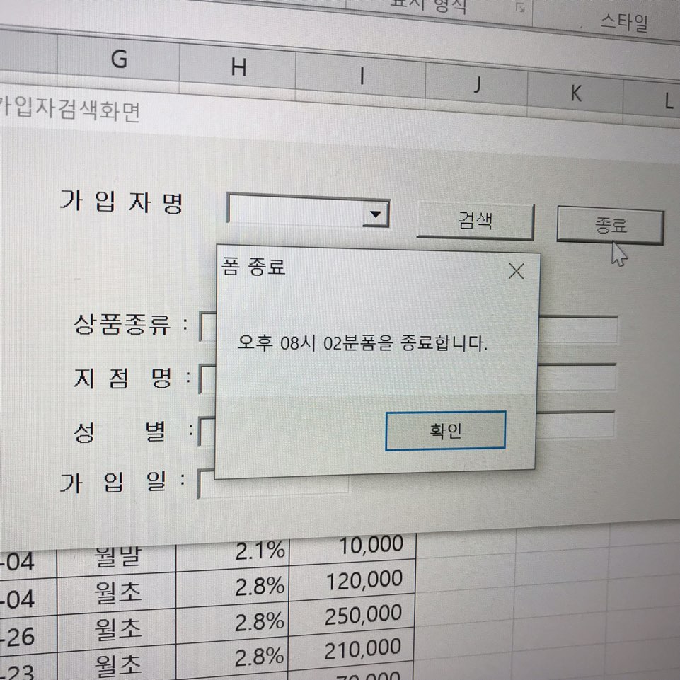 " 폼을 종료합니다." 로 적어주시면 폼 앞에 1칸 띄어쓰기가 됩니다.