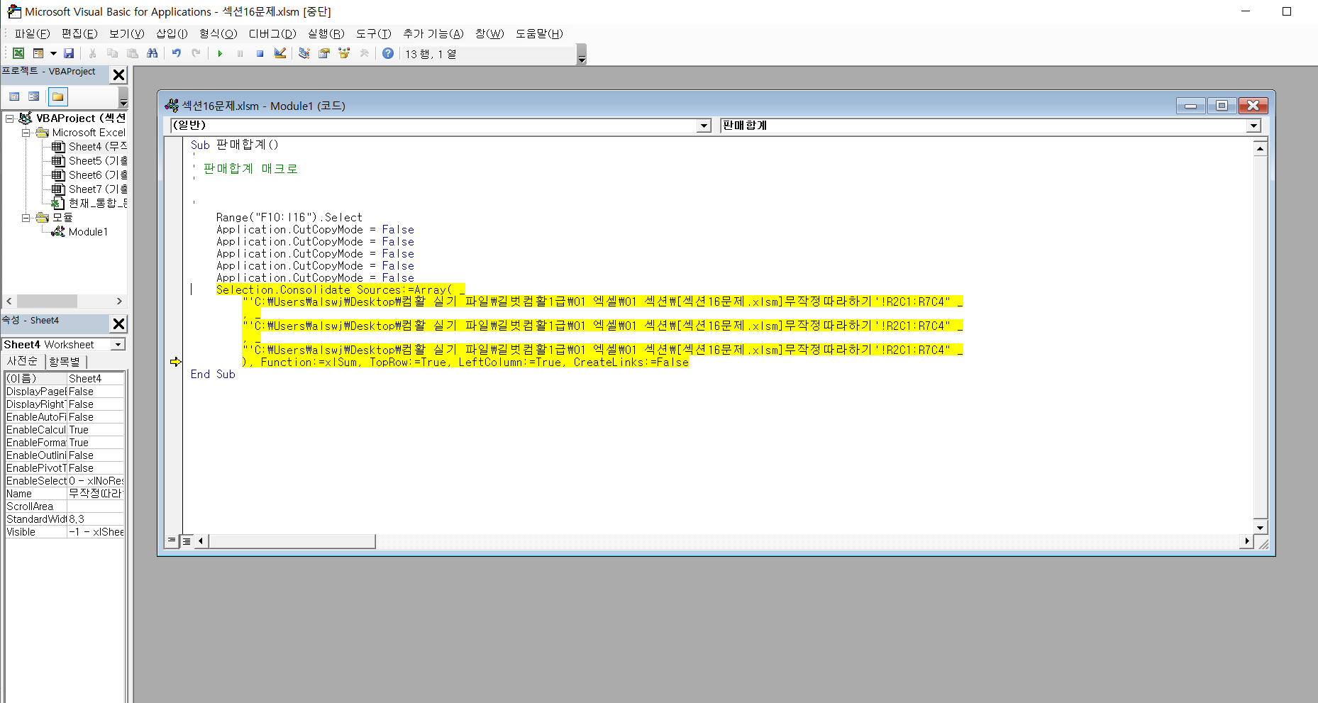 그래서 매크로를 확인해보니 참조가 3군데 같은곳으로 지정한 걸로 나오네요ㅠㅠㅠ 몇번 해봐도 자꾸 결과가 이렇게 나옵니다ㅠㅠㅠ