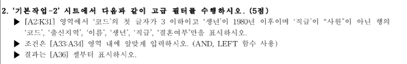 문제1) 기본작업의 2번문제 고급필터 수행문제에서