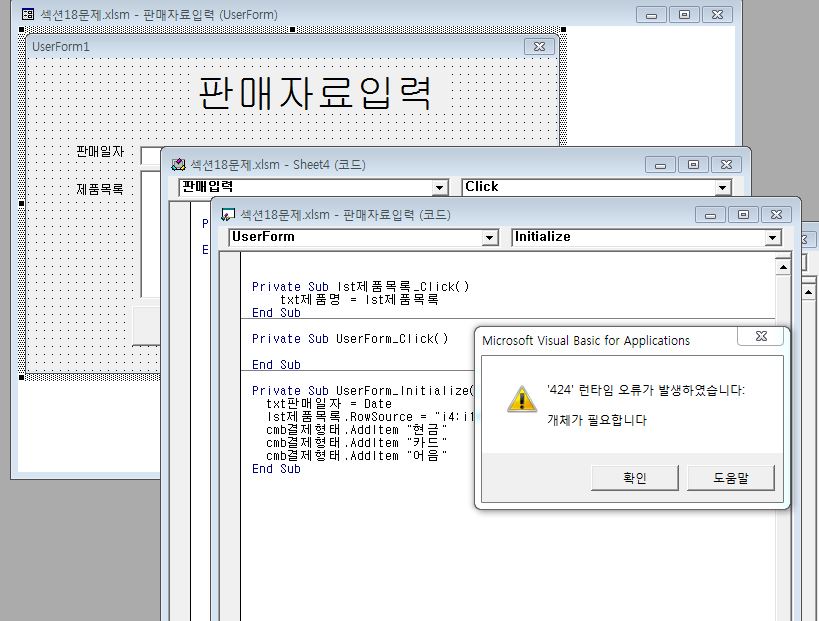 424 런타임 오류는 오타에 의해 발생 합니다.