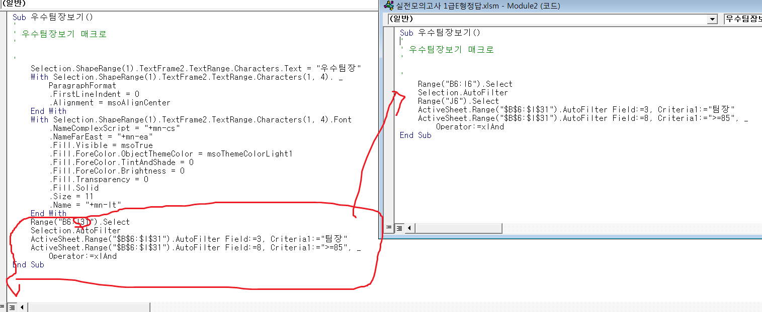 정답이랑 표모양은 같은데 매크로 실행만 안됩니다.