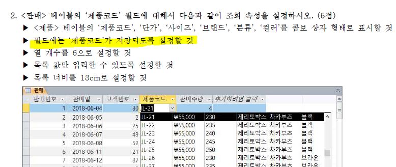 2019 컴활 실기 기출문제를 풀다가 문의 드립니다