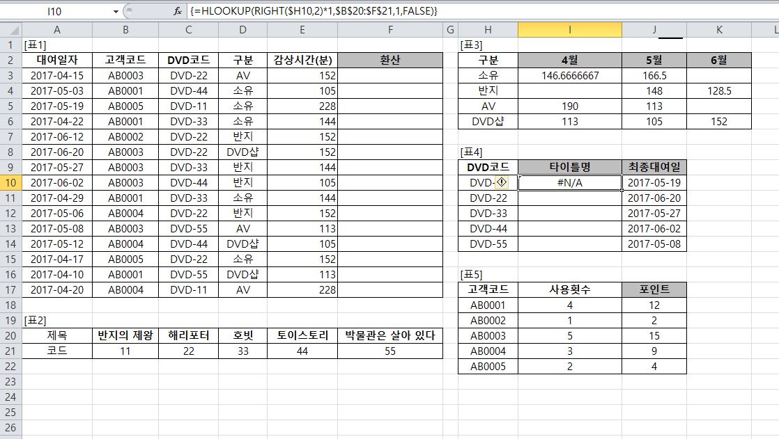 이 문제에서 HLOOKUP을 사용해서 푸는건 왜 안되는 건가요?