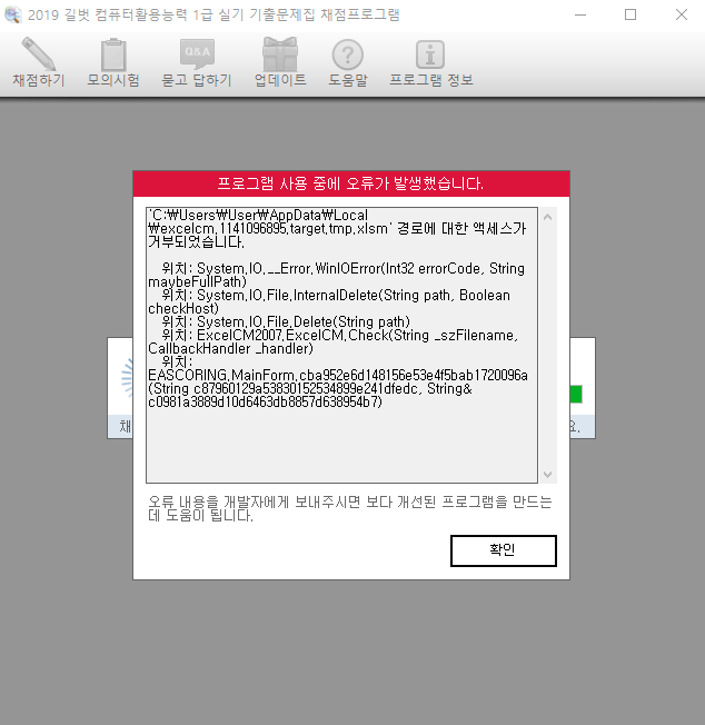 컴활1급 실기 채점프로그램 오류입니다... 사용이 안되요..