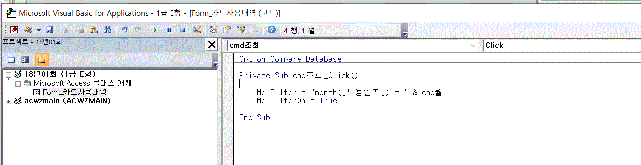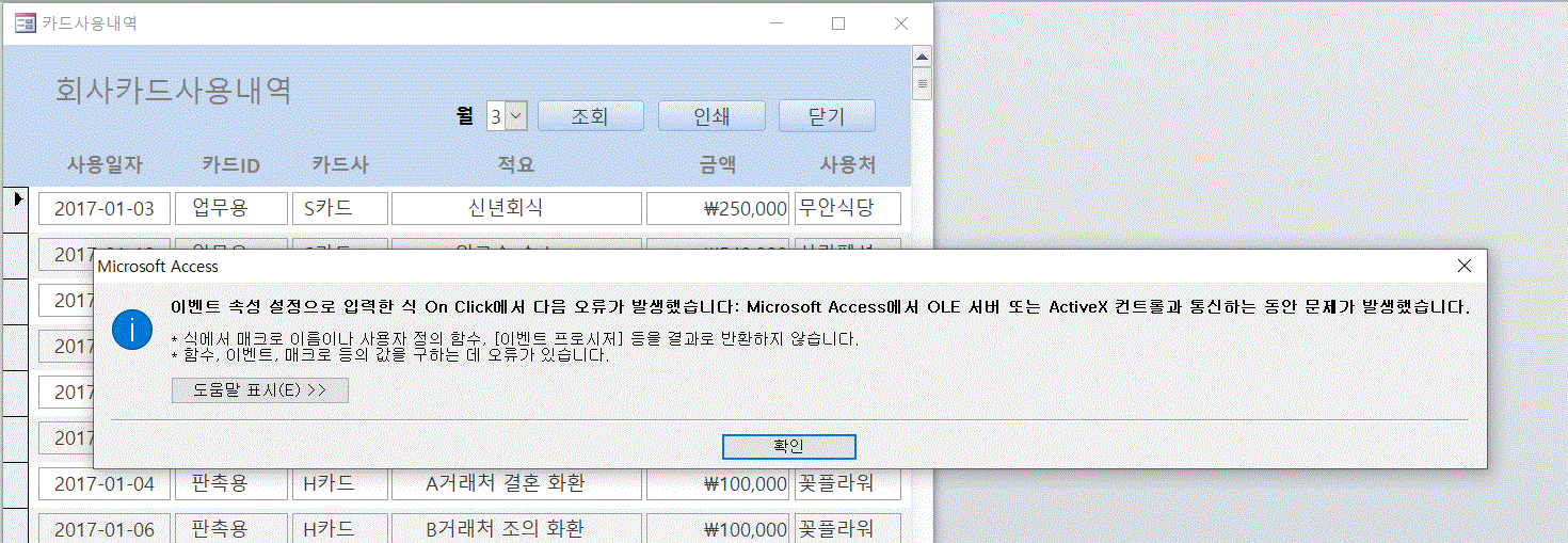 작성하신 액세스 파일 자체를 올려주세요. 파일을 봐야만 정확한 원인을 알 수 있을 것 같습니다.