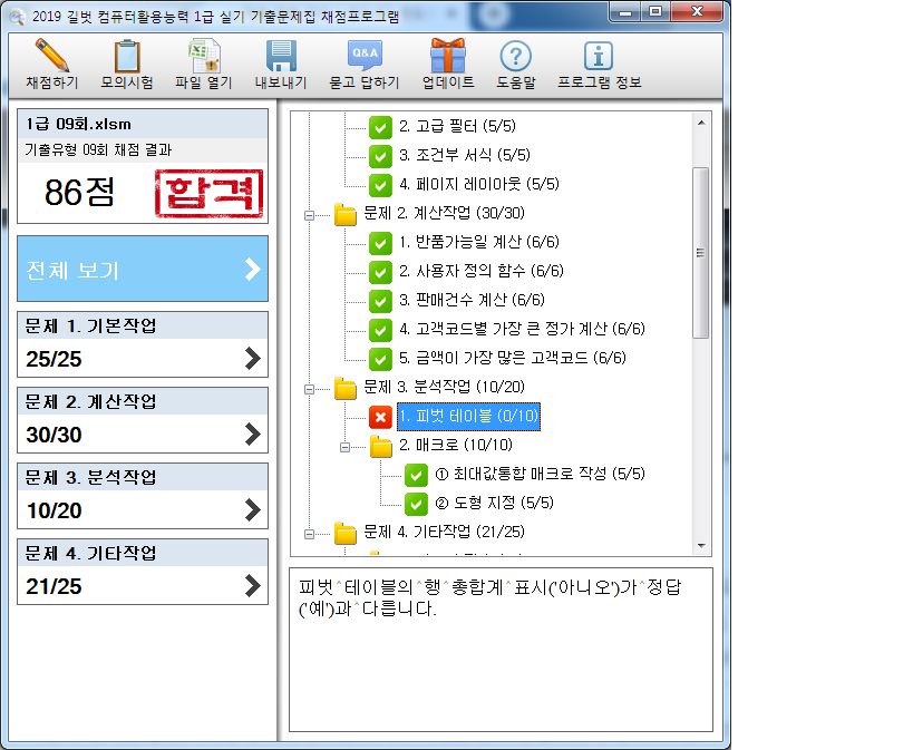 화면에 표시되는 내용이 제시된 문제 그림과 동일하다면 총합계에 대한 설정차이가 있더라도 시험장에서는 정답으로 판단합니다.
