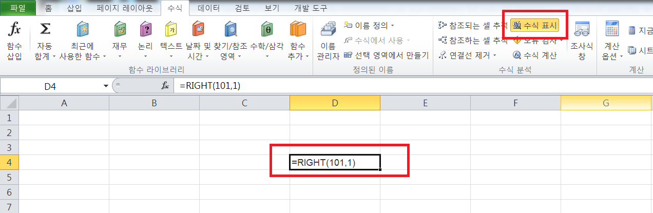 이거였는데, 자꾸 결과가 안나오고 =right(101,1) 이렇게 그대로만 나와서 문제를 못 풀었어요ㅠㅠ