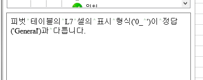 대여료의 표시형식을 '값필드 설정'의 셀서식에서 숫자 범주를 이용해서 풀었는데 사진과 같이 건드리지 않은 부분이 정답과 다르다고 나옵니다.