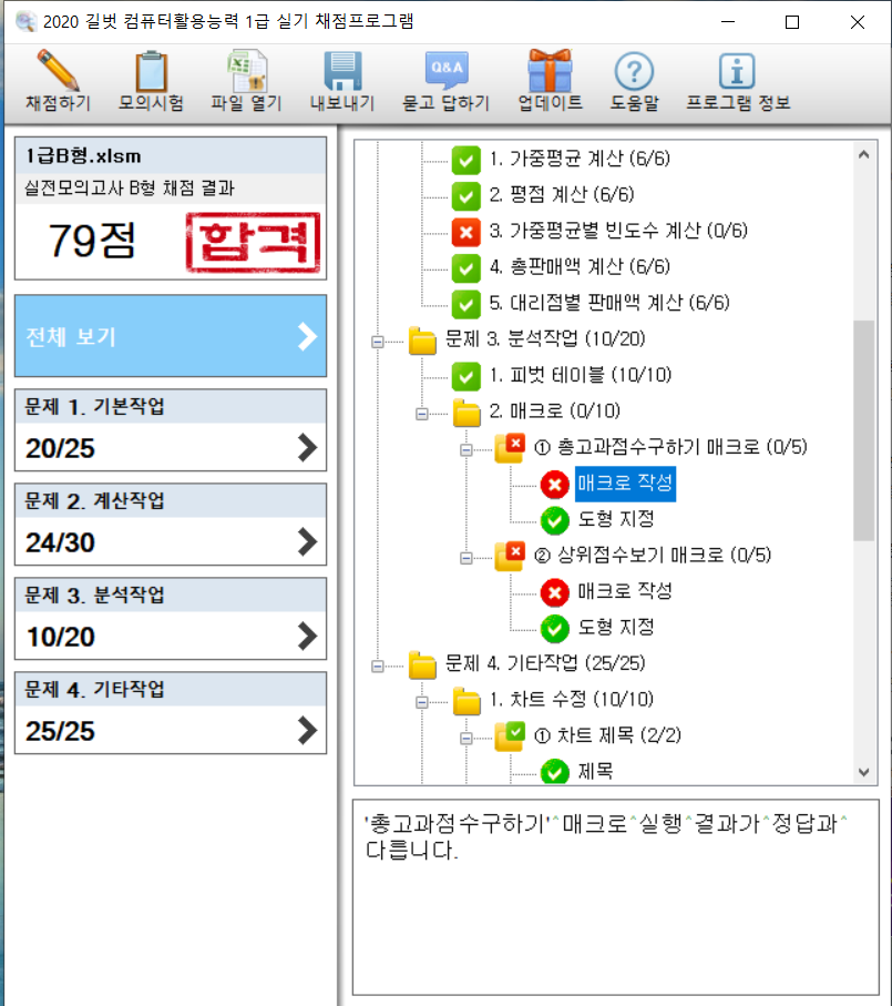 채점 프로그램을 돌리니까 이렇게 나옵니다
