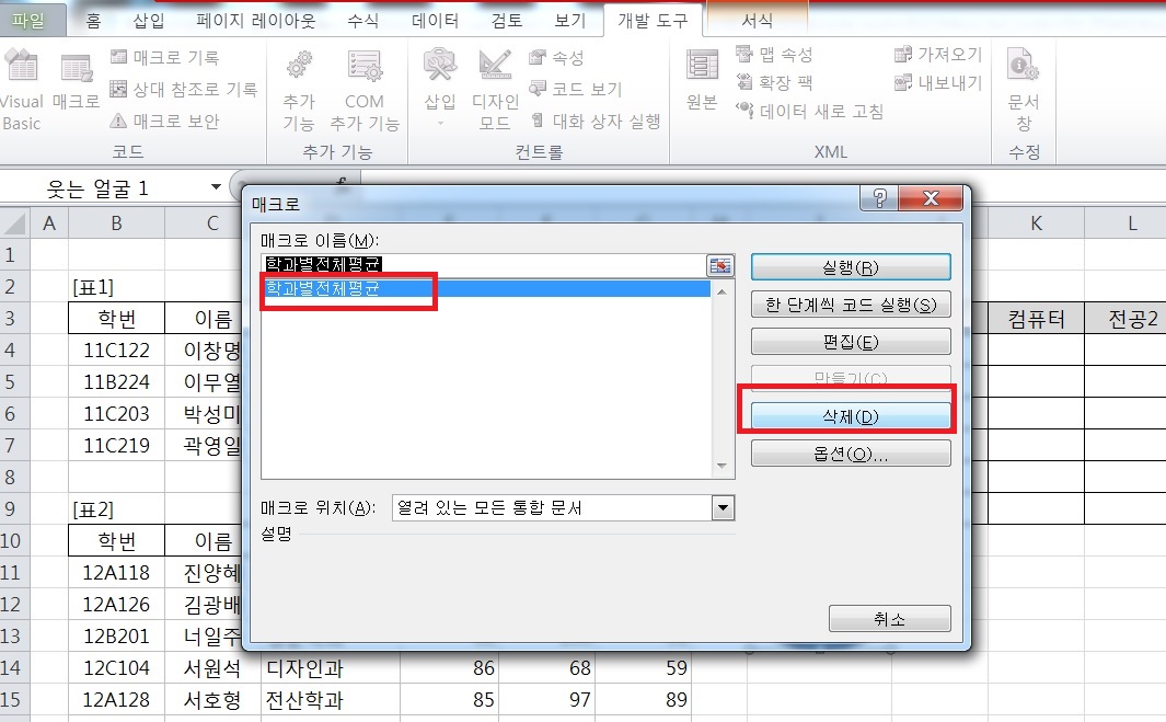 매크로 수정은 조금 복잡하기 때문에 새로 만드는 것이 좋겠습니다.