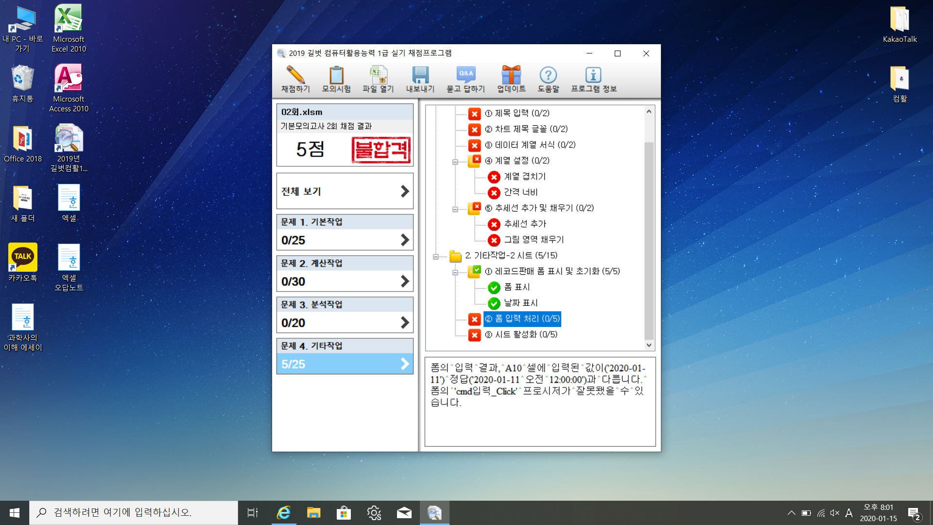 질문 3: 위 코드에서 Cells(입력행, 1) = cmb판매일자으로 변경하면 아래 첨부한 파일과 같이 됩니다. 그러나 워크시트 4행을 보면 정답은 시간을 표시하지 않은 2020-01-11이 아닌가요?