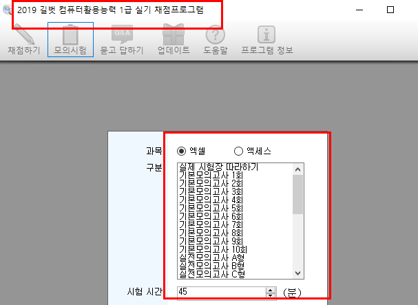 그리구 채점프로그램에 있는 모의시험이 모두 2019년도 유형 1~10 인데