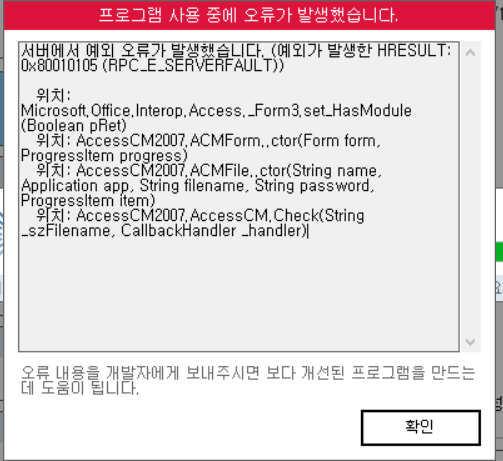 0x800105 오류는 채점 중에 엑셀 또는 액세스와의 응답이 끊겼을 때 발생합니다.