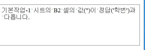 "기본작업-1시트의 b2셀의 값이 정답(학번)과 다릅니다" 라고 표시됩니다.