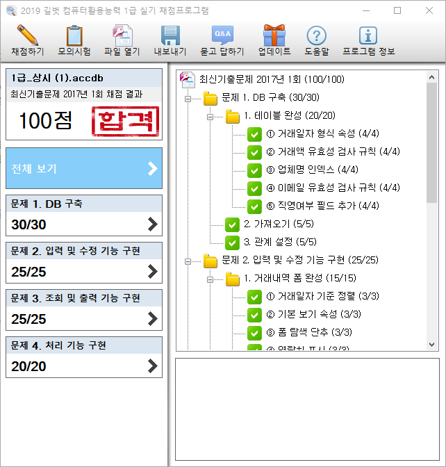잘 사용 하다가 엑세스 최신기출문제 18년1회와 17년상시 채점시 이렇게 뜨는데 어떻게 해야햐나요?