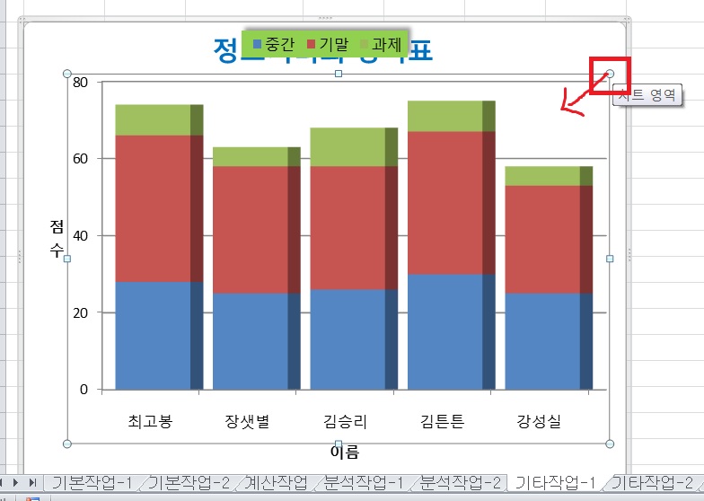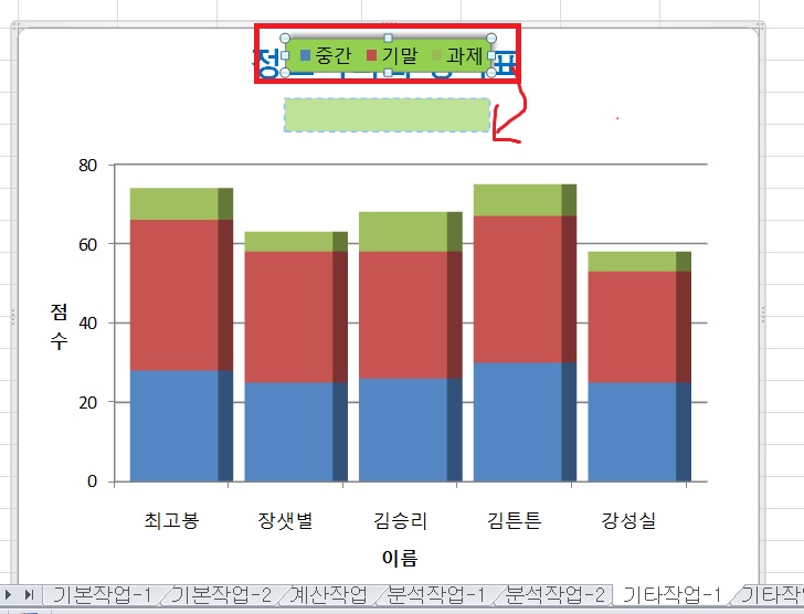 표 그림에서는 차트 제목과 차트 사이에 범례가 들어갈 공간이 있는데 올린 3회 파일에서는 범례 위치를 정답대로 위로 설정하더라도 공간이 없어 채점 프로그램에서 틀립니다. 어떻게 해야 하나요?
