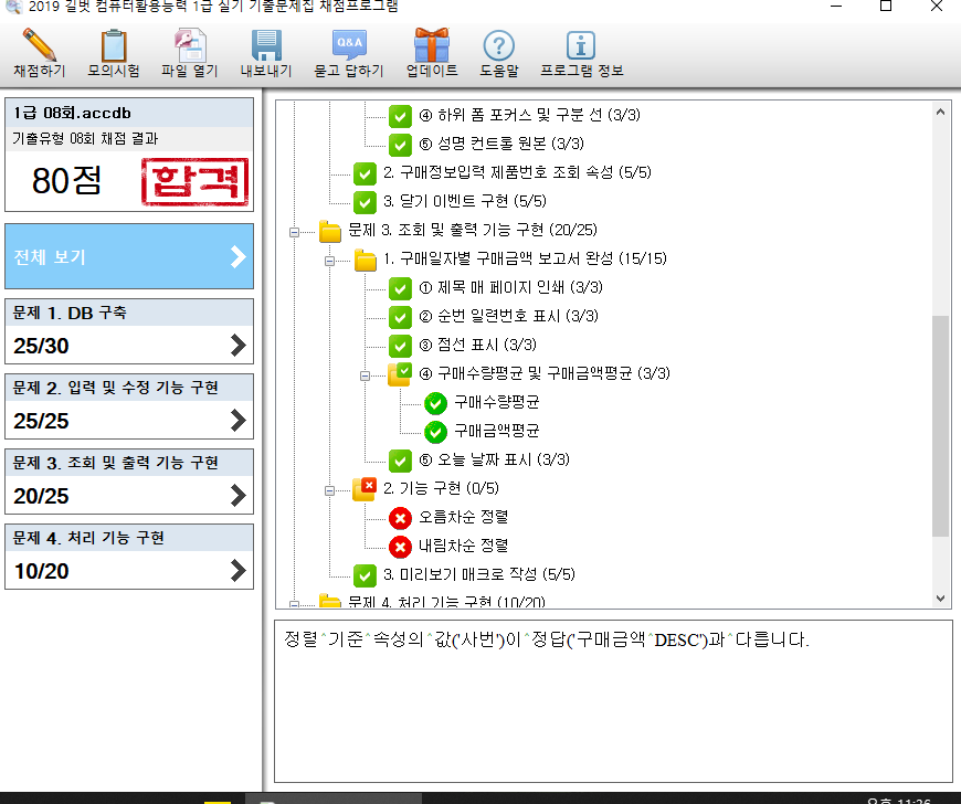 정렬 문제는 제가 열어서 확인을 해보았는데 맞게 잘 작성하셨고 결과도 정상적으로 나오고 있습니다.
