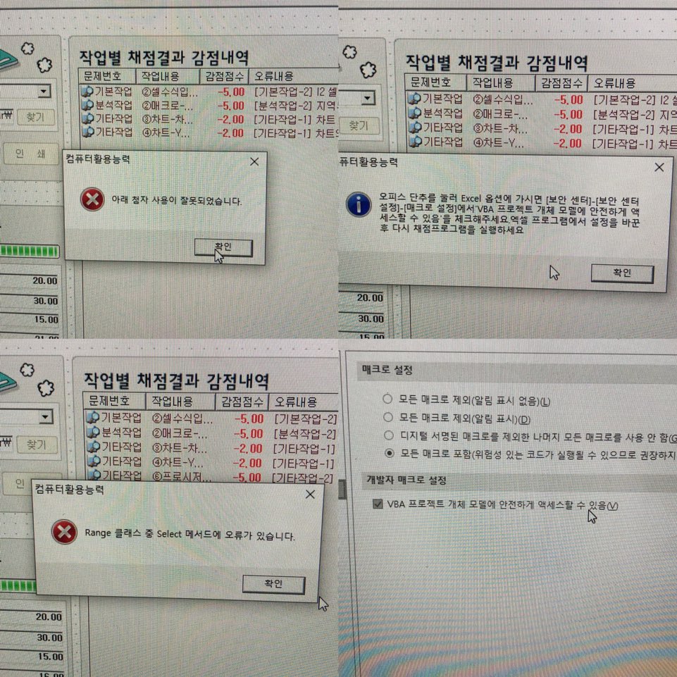설정이랑 제대로 한거같은데 기타작업 2번을 채점할려고 하면 자꾸 이런창이 떠요