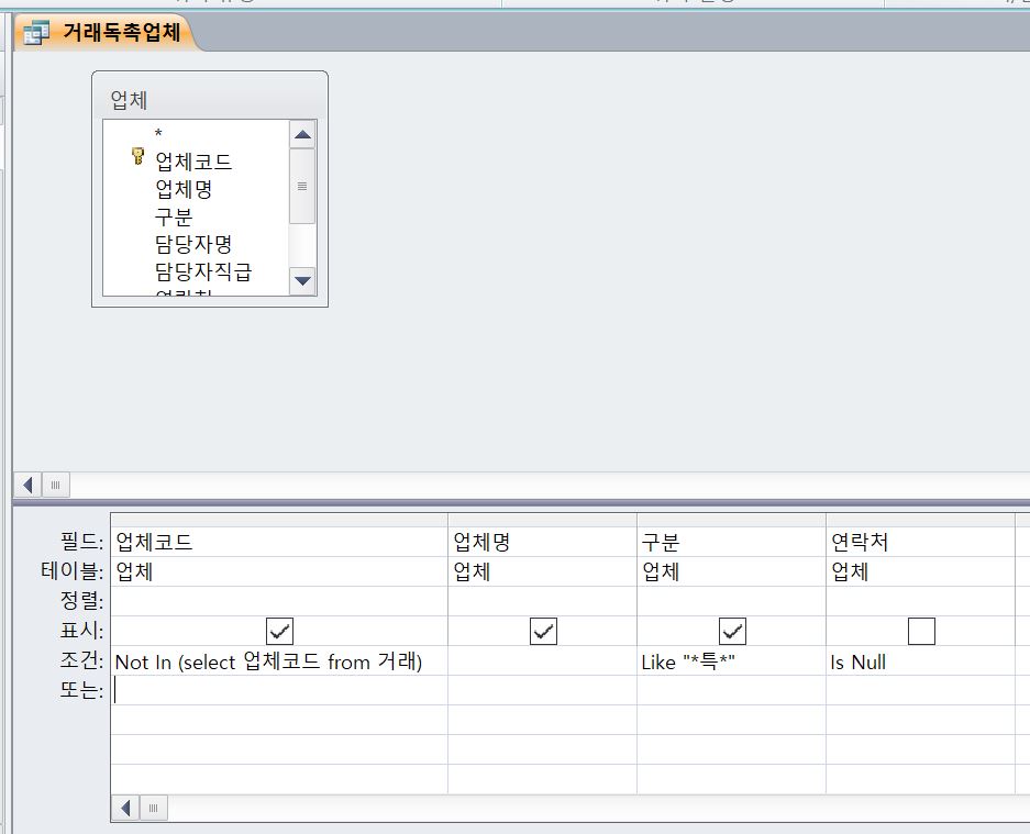 업체나 거래 테이블에 추가된 레코드가 있다면 삭제한 후 다시 수행해보세요. 첫번쨰 필드만 입력이 되고 나머지가 빈 레코드는 삭제하고 나서 수행하니 정상적으로 잘 됩니다.