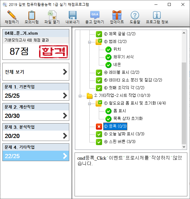 문의하신 오류는 채점 프로그램으로 채점할때 불러와야 하는 프로그램이 있는데, 이것을 액세스할 수 없어서 생긴 문제입니다.