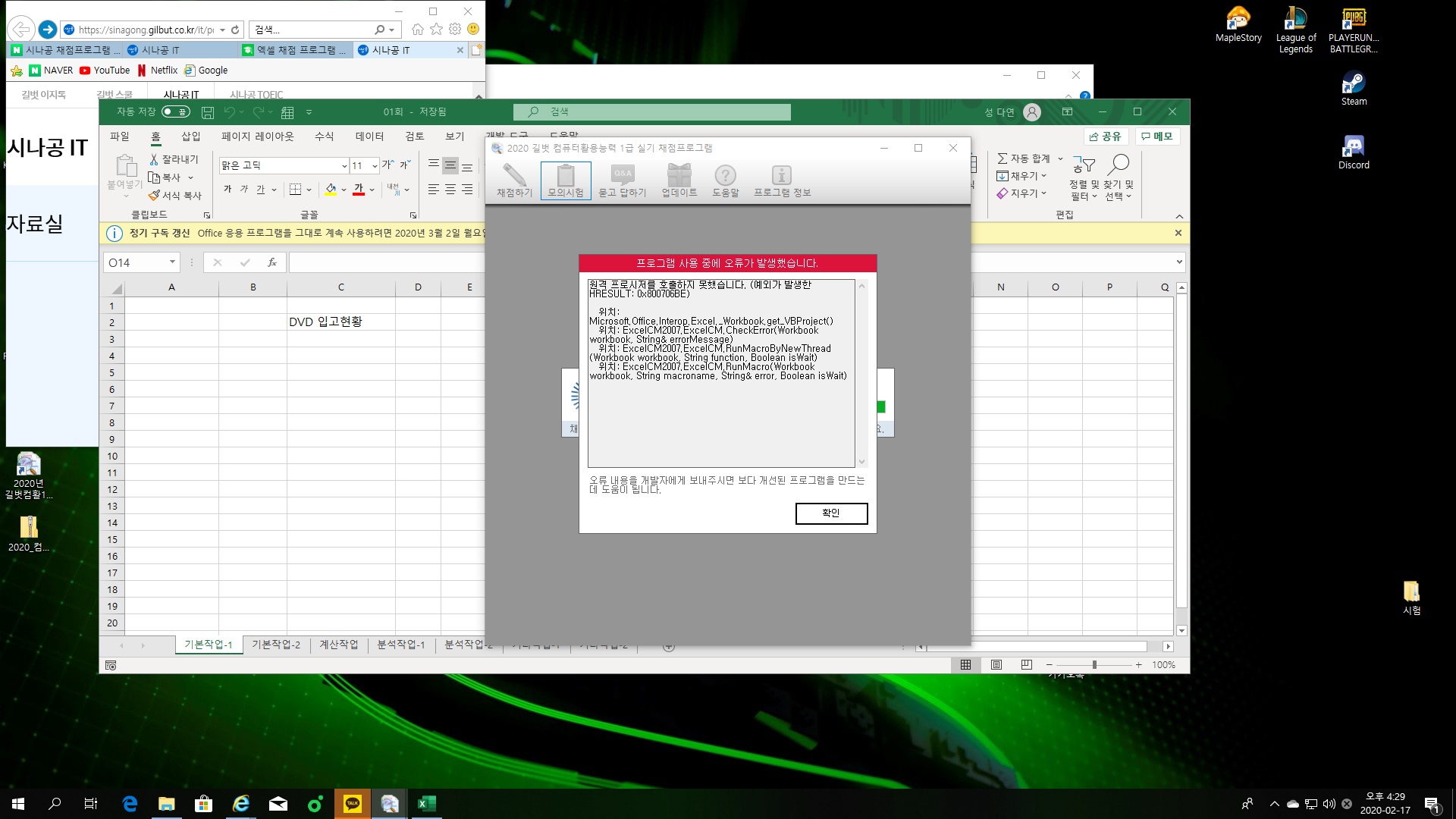 문의하신 오류는 윈도우 환경 문제로 비쥬얼 베이직 쪽에서 오류가 발생한 것으로 보여집니다.