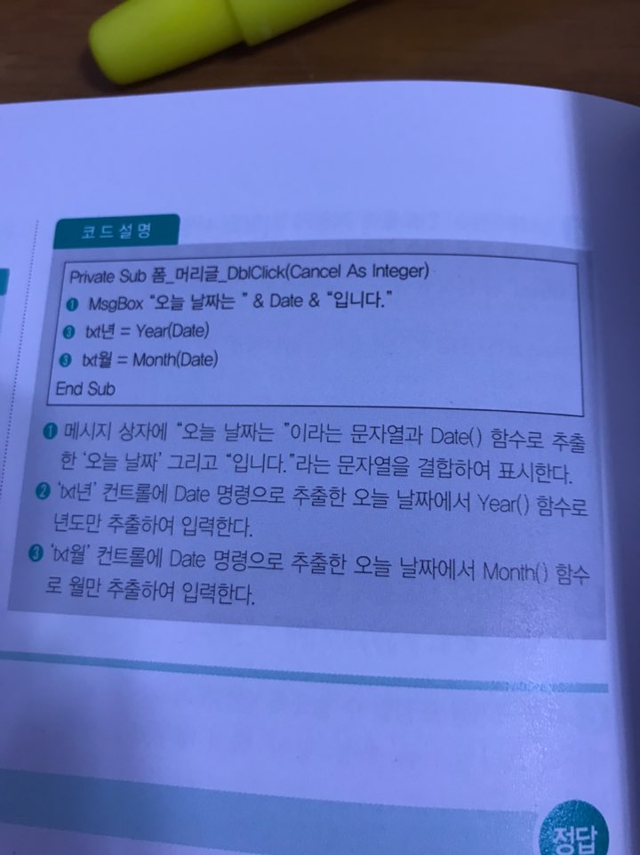 문제에서는 메시지상자에서 <확인> 단추를 클릭하면, txt년과 txt월에 각각 해당하는 년과 월을 표시하라고 되어있는데, 그러면