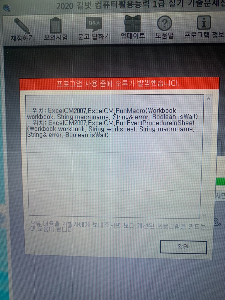 문의하신 오류는 윈도우 환경 문제로 비쥬얼 베이직 쪽에서 오류가 발생한 것으로 보여집니다.