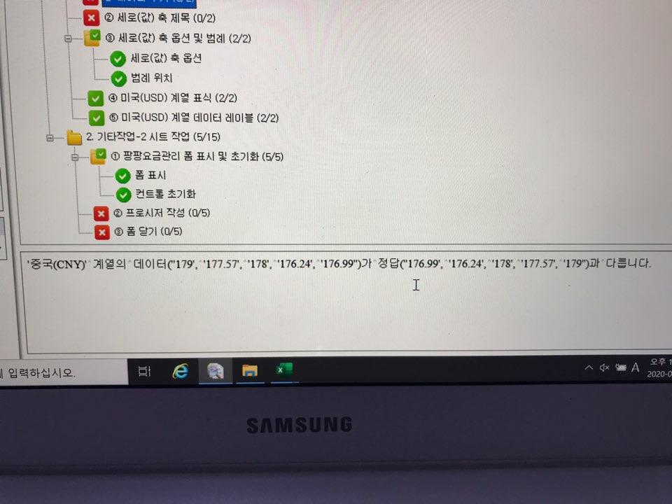차트의 경우, 정답 파일과 데이터 순서가 달라서 감점된 것입니다.