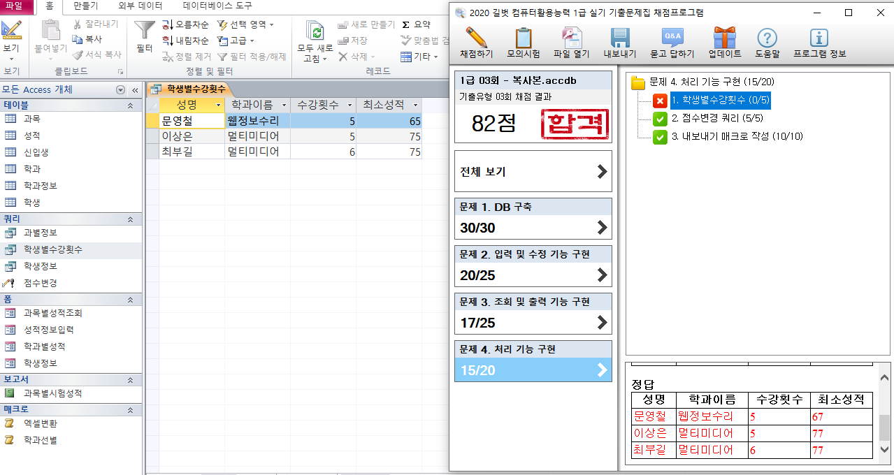 문제4의 1번을 보면 문제에서 주어진 최소성적이 65, 75, 75인데