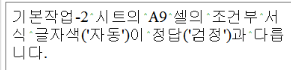 하지만 채점 프로그램을 돌려보니 글자색이 정답("검정")과 달라서 오답처리 되었습니다.