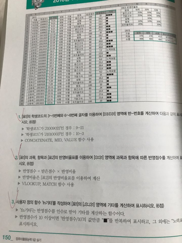 여기 2번 문제 답이 =hlookup(f3,$c$33:$e$35,match(g3,{"영어","수학"}-1)+1)이라고