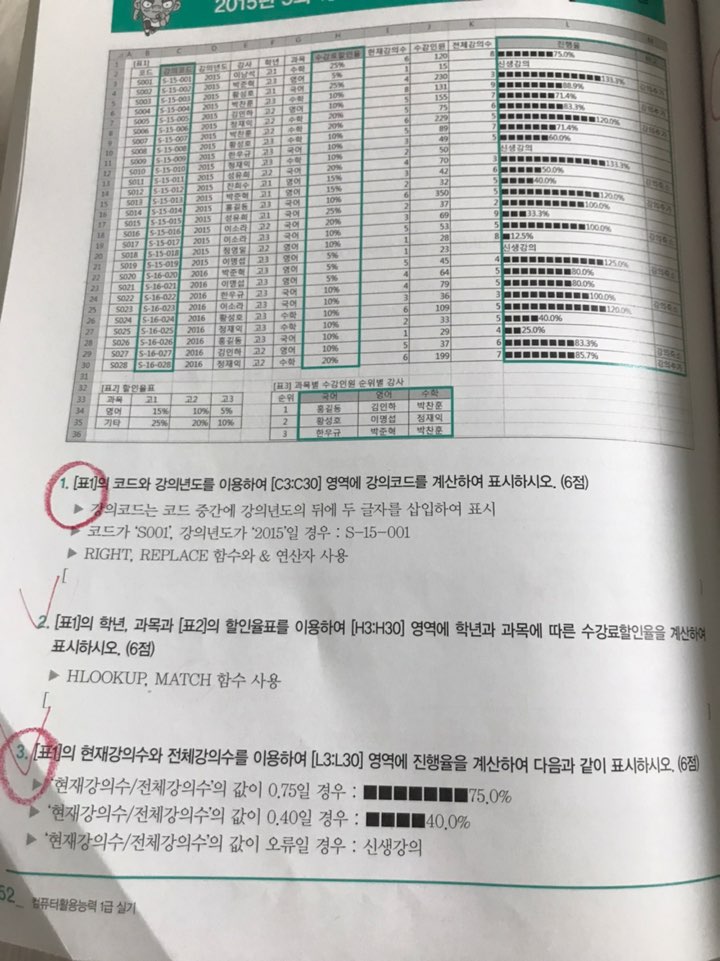 : [표1]의 과목은 "영어, 수학, 국어" 중 하나인데 [표2] 할인율표의 과목은 "영어, 기타"입니다. 즉, 영어와 그 외의 과목으로 구분하라는 의미이지요.