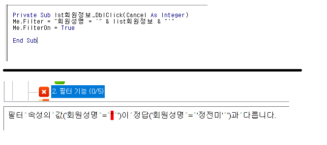 기본모의고사1회 문제3 -> 2. Filter 속성 이벤트 프로시저 구현하기
