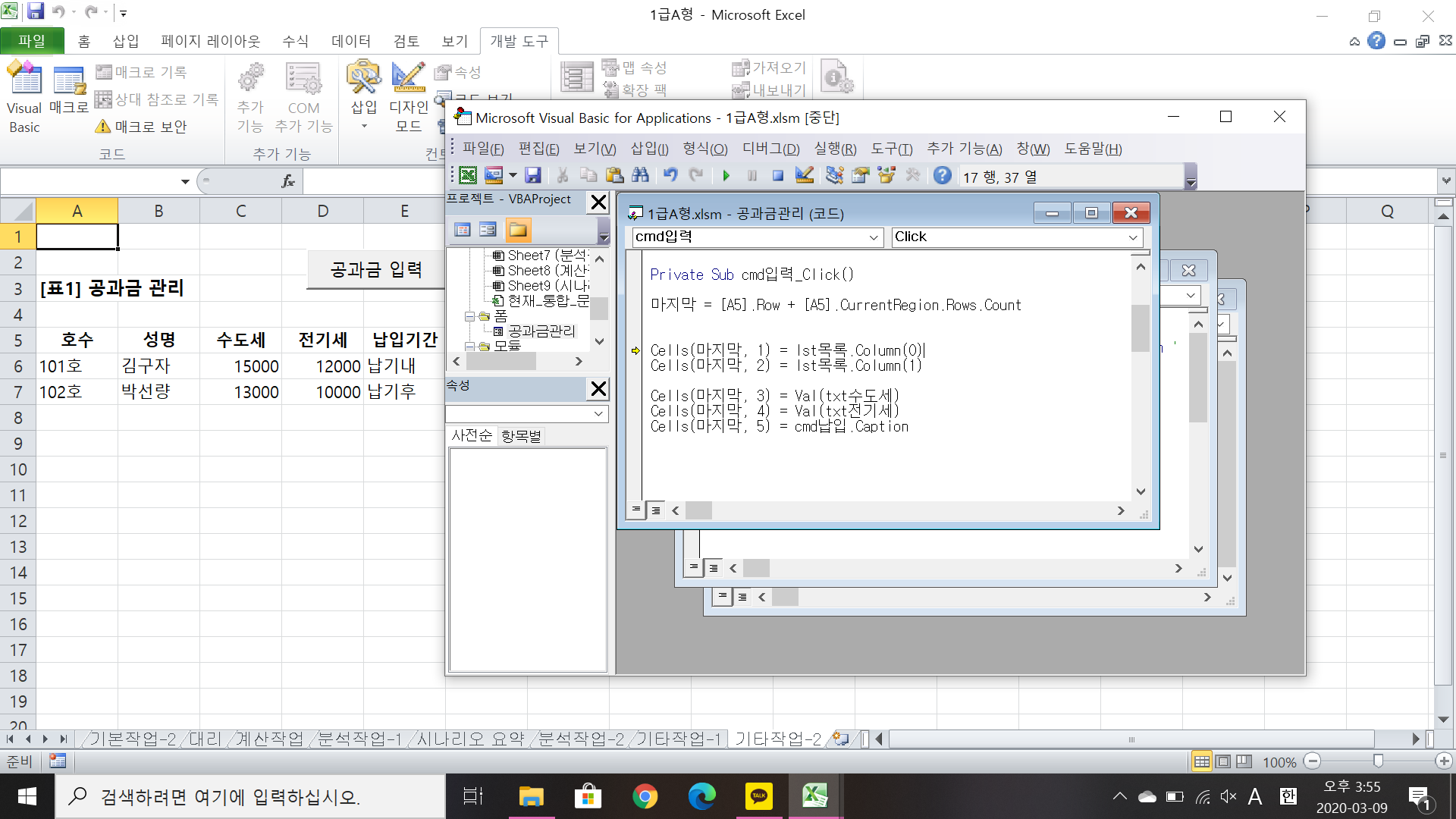 폼에 입력된 데이터를 표 마지막 행 다음에 연속하여 추가하도록 할 때 표가 시작되는 셀을 기준으로 잡는 것으로 알고 있는데요.