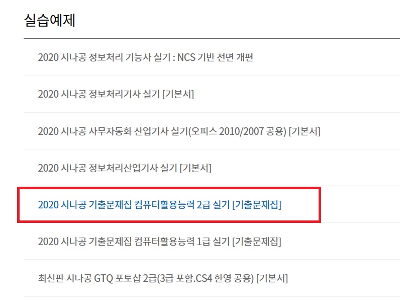 2020_컴활1급_실기zip을 사용했지만 이 폴더의 자료에는 시나공 기출문제집에 대한 엑셀과 엑세스 파일이 없었습니다.