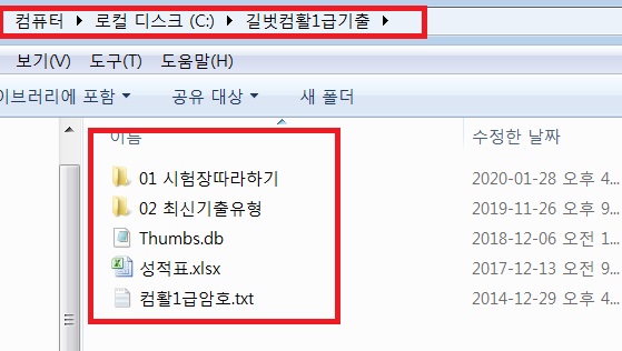 c:\길벗컴활1급기출 폴더를 확인 해 보세요.