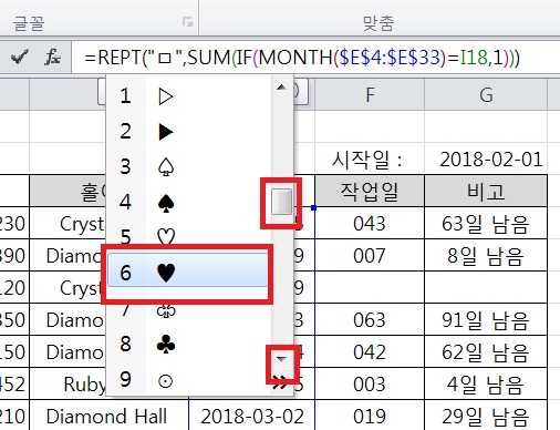 182페이지 4번 문제중 엑셀 파일에서 하트모양의 도형을 설정하는 방법이 궁금합니다.