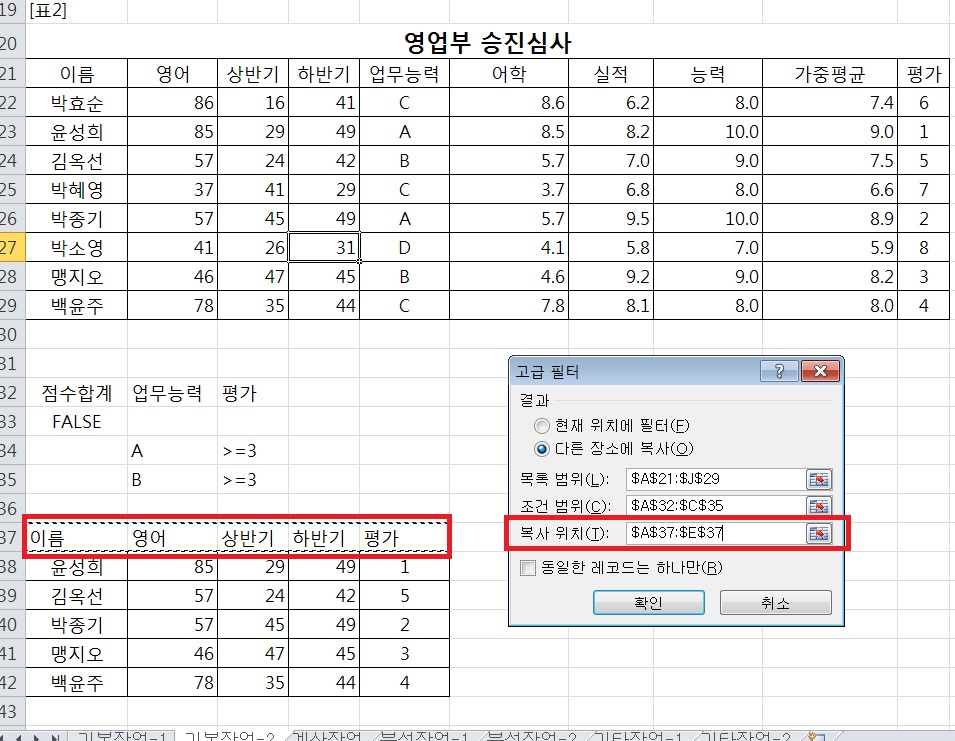 "추출범위의 필드이름이 잘못되었거나 없습니다" 라는 메세지 박스가 뜹니다.