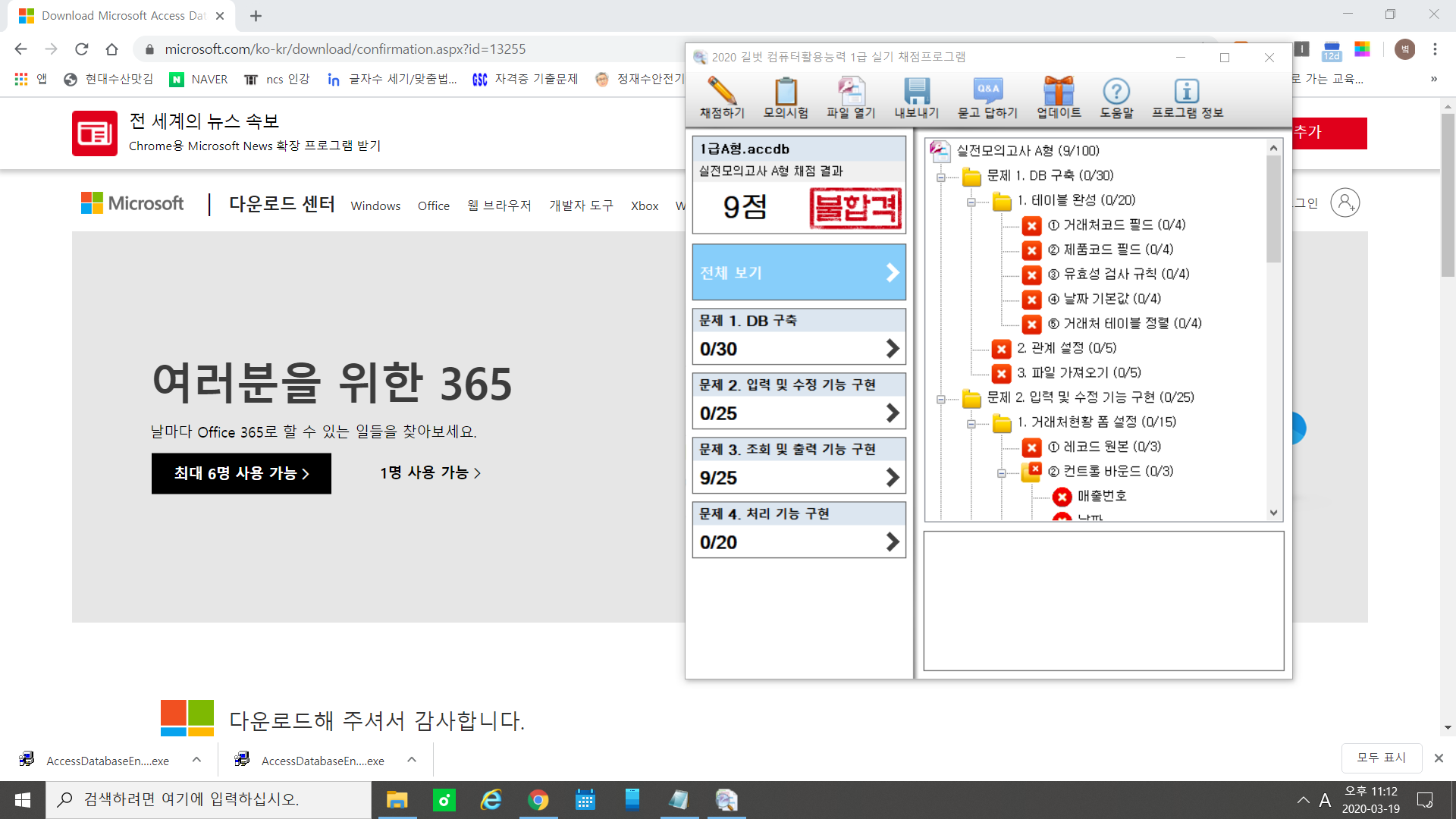 말씀하신대로 프로그램을 다시 까니 엑세스는 채점이 되는데 엑셀은 똑같이 캐스트가 잘못되었다고 하네요.