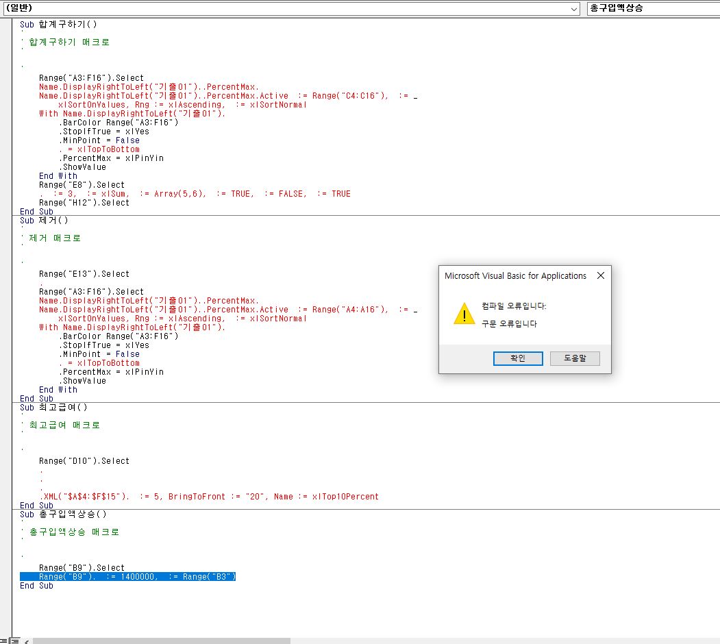 혹시 사용하시고 계신 오피스 프로그램이 2010 버전이 아닌 경우 매크로 오류가 나는 경우가 있었습니다.
