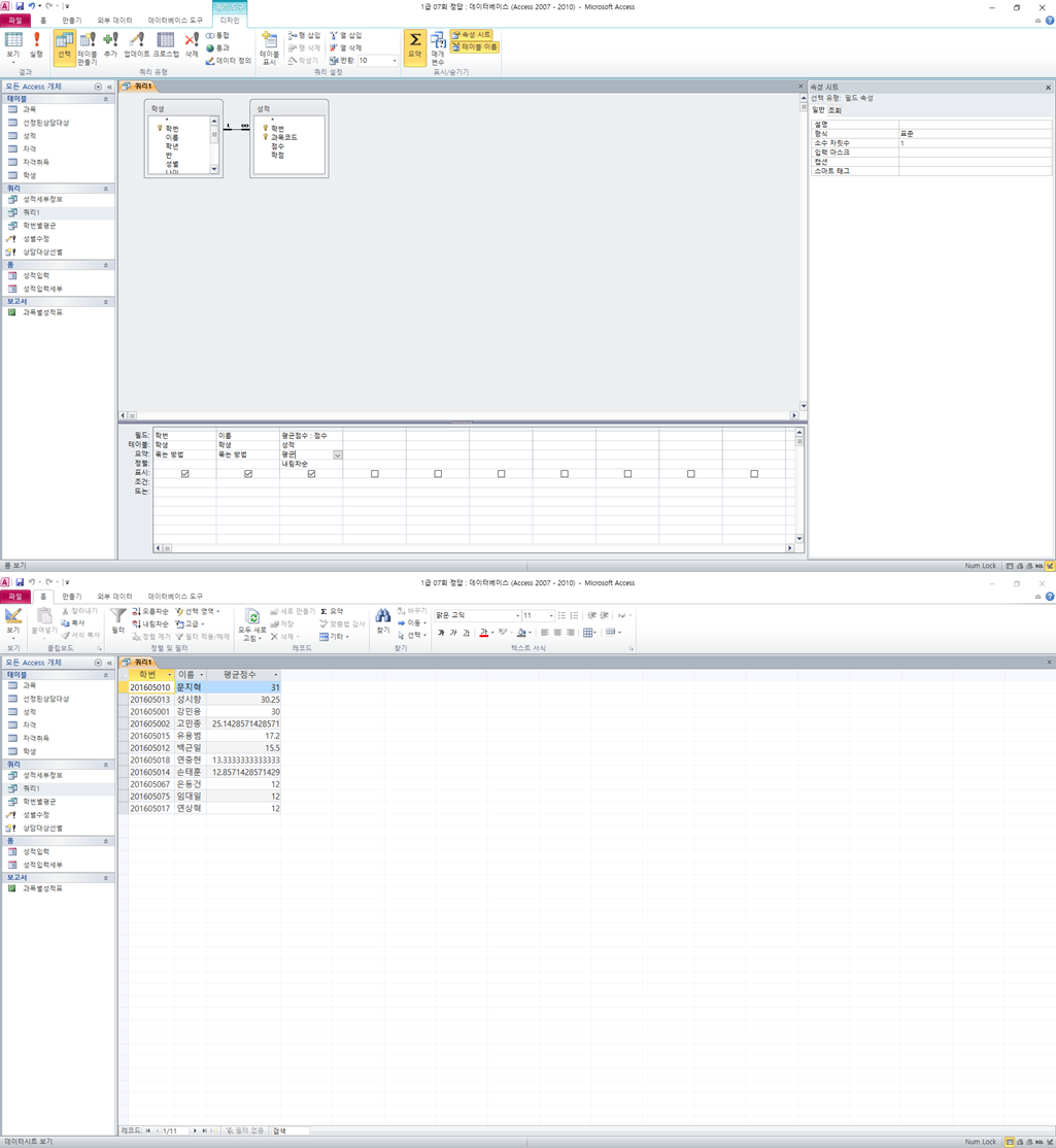 아래 와 같이 정답과 동일하게 작성하였는데 평균성적 소숫자리가 변경이 안됩니다. 무엇이 문제인가요?