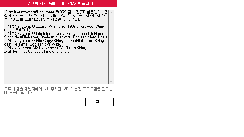 마이크로 소프트 액세스의 설정에서 열기 모드를 [단독]으로 지정해서 생긴 문제로 보입니다.