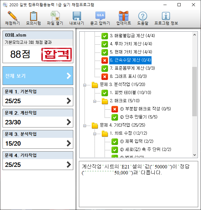 간혹 오피스 프로그램의 버전이 다른 경우에 오답처리 되는 경우도 있습니다.