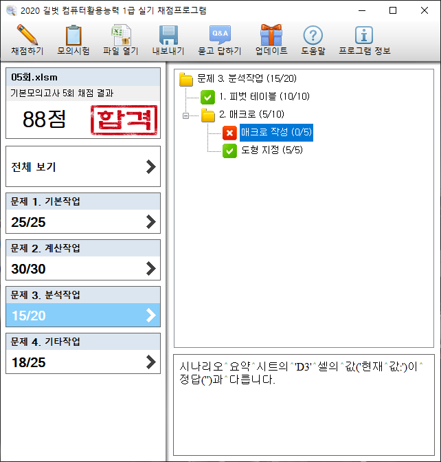 실제 시험에서는 매크로가 정상 실행 되면 정답으로 인정 됩니다.