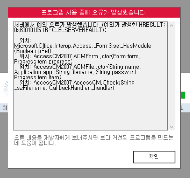 0x800105 오류는 채점 중에 엑셀 또는 액세스와의 응답이 끊겼을 때 발생합니다.