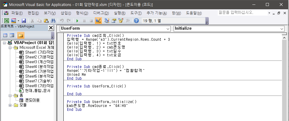 빨간 색으로 표시된 부분이 입력과 조회는 반대로 작성 하셔야 합니다.