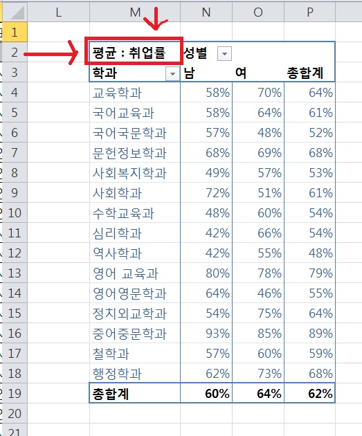 기출 p 205 의 피벗테이블 시작점 질문합니다.